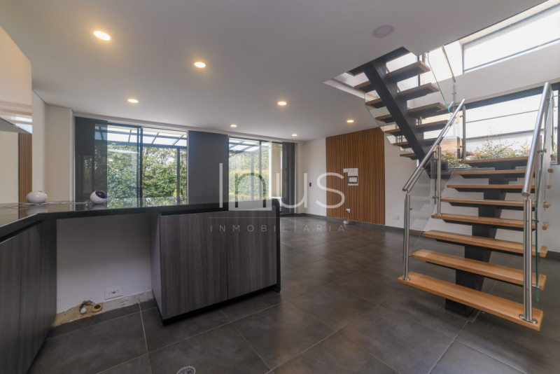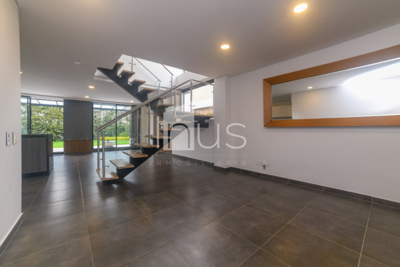 NO COMISIONISTAS - Amplia casa de dos niveles en conjunto campestre con zona verde trasera, ofrece un moderno diseño y un amplio espacio con iluminación natural, magnífica distribución de espacios, hermosos acabados y agradable vista a la montaña. El primer piso cuenta sala comedor y chimenea a gas, cocina abierta, zona de ropas independiente, terraza trasera cubierta con pergola, zona verde de 90m2, estudio, baño social y un deposito. El segundo piso tiene tres habitaciones, family room, la habitación principal con balcón, baño y vestier. Cuenta con dos parqueaderos. El conjunto tiene portería y vigilancia por telesentinel y parqueaderos para visitantes. El sector es campestre, residencial y tranquilo.