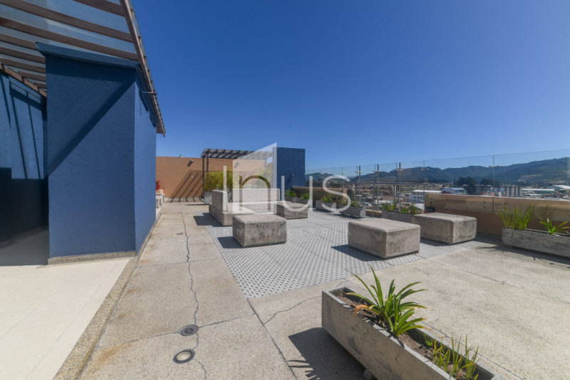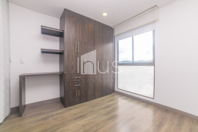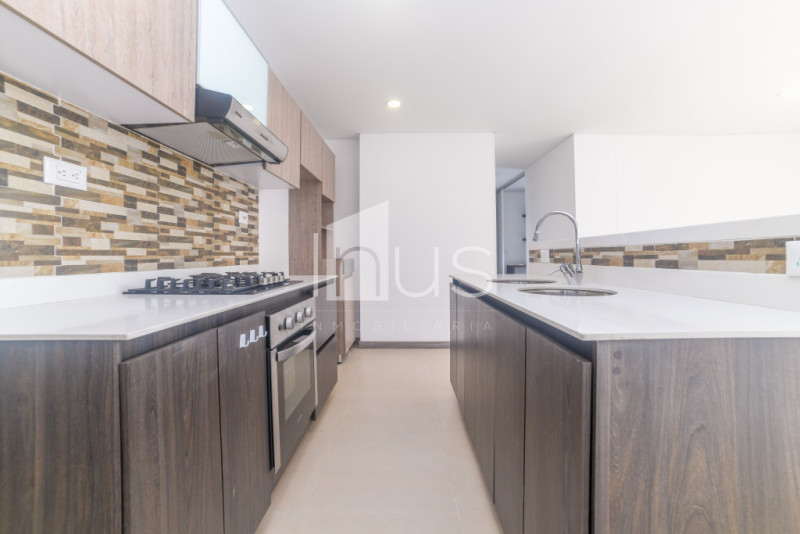 NO COMISIONISTAS - Moderno apartamento, muy iluminado, con agradable vista, en perfecto estado y con una magnífica distribución de espacios y acabados. Cuenta con sala - comedor con salida a balcón, cocina en isla, zona de ropas independiente, baño social, estudio que se puede convertir en habitación, dos alcobas, la principal con balcón, baño y walking closet. Puerta con cerradura electrónica. Cuenta con un parqueadero cubierto independiente y deposito. El conjunto ofrece recepción con portería, ascensor, gimnasio, zona BBQ en la terraza, salón social y parqueaderos para visitantes. El sector es residencial y tranquilo, de fácil acceso, cercano a zona comercial, transporte público, supermercados y colegios.