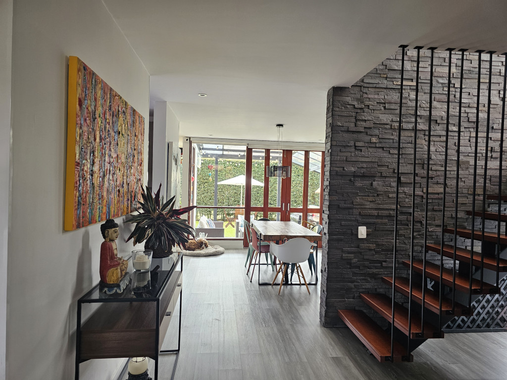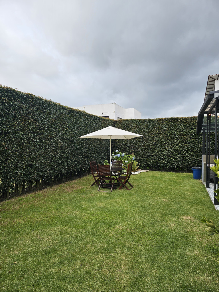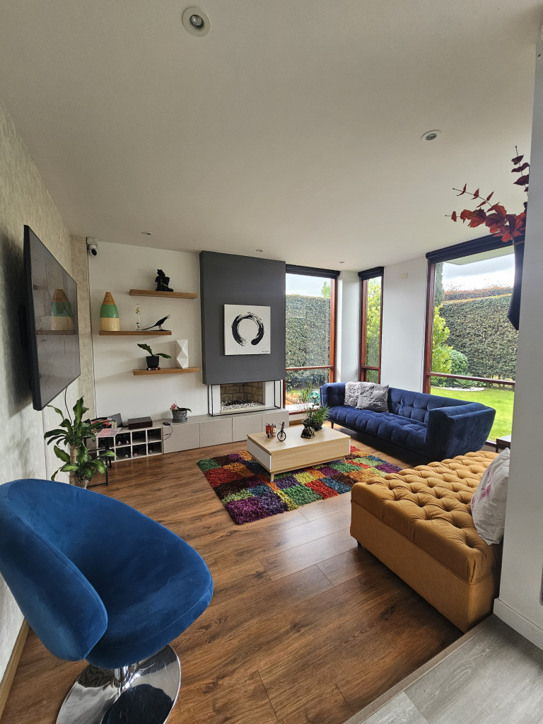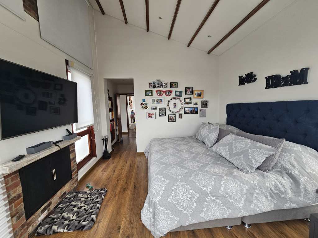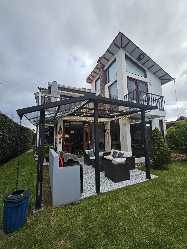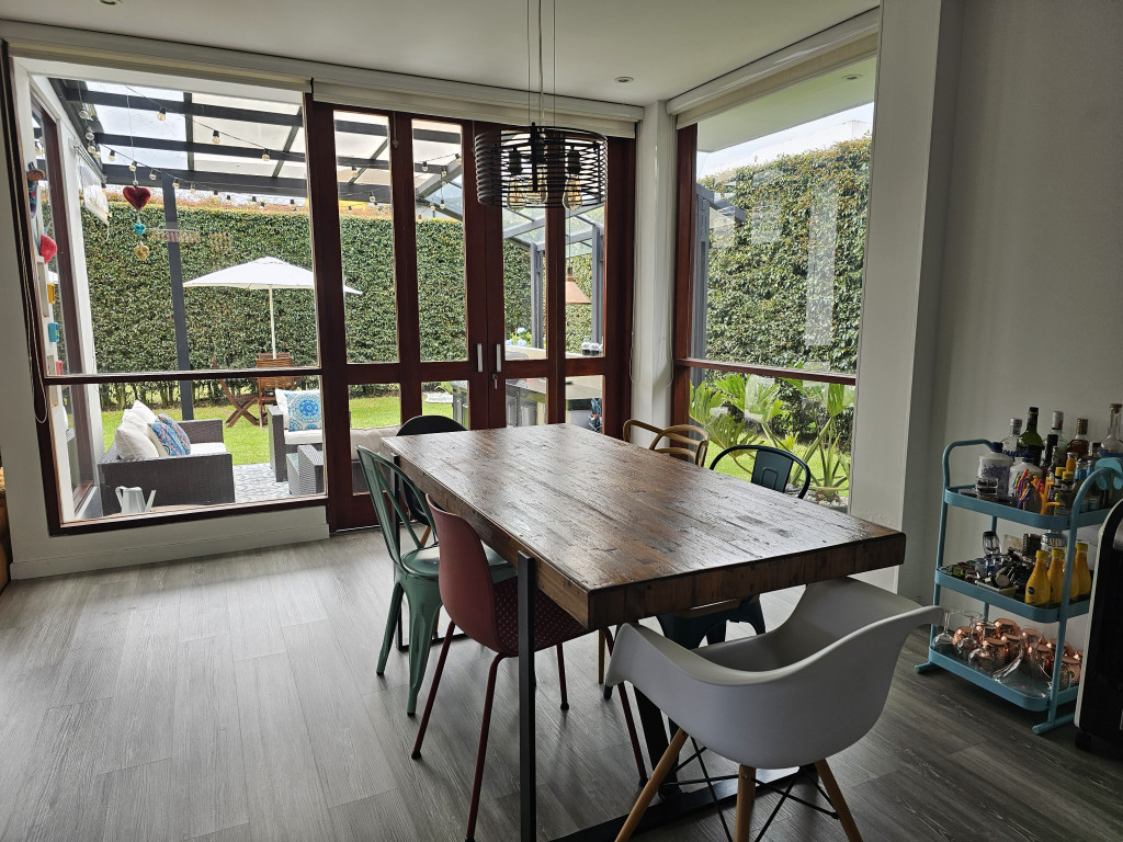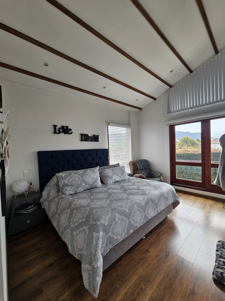 NO COMISIONISTAS - Espectacular casa de dos plantas en condominio campestre y sobre un lote independiente de 400M2. Ofrece un moderno diseño, magnifica distribución de espacios, iluminación natural y en buen estado. Cuenta con la sala con chimenea, el comedor con salida a una zona BBQ cubierta con pérgola, amplio patio trasero con zona verde, cocina semi abierta con barra, zona de ropas independiente, baño social, estudio, tres habitaciones cada una con balcón, techos altos y con su baño, la principal cuenta con chimenea, jacuzzi, deposito y salida a una terraza con agradable vista. Tiene tres parqueaderos. El sector es campestre y seguro, de fácil acceso a la variante Cajicá - Zipaquirá. El valor ya incluye la administración.