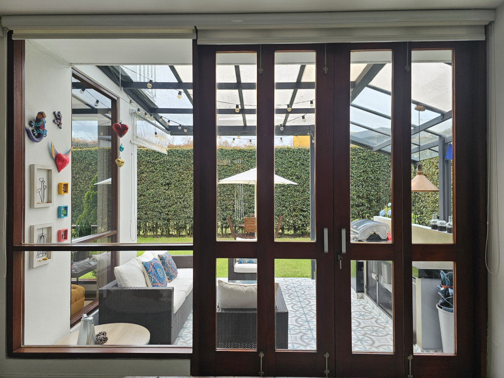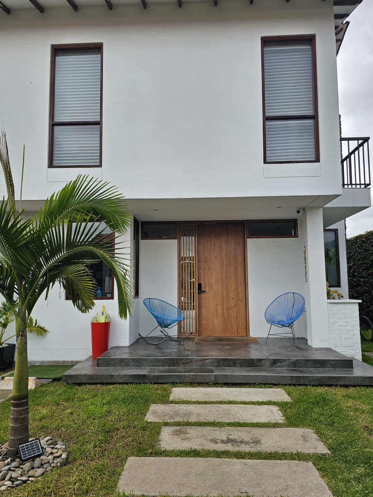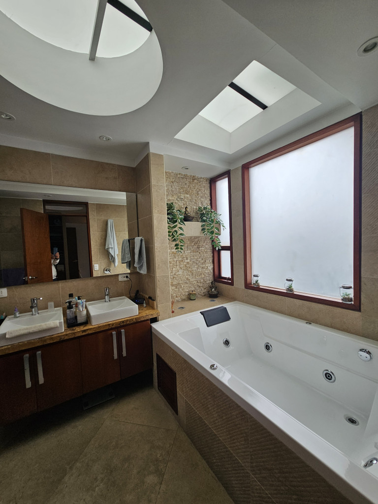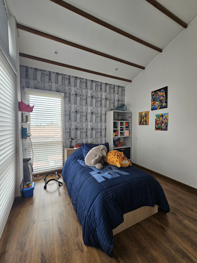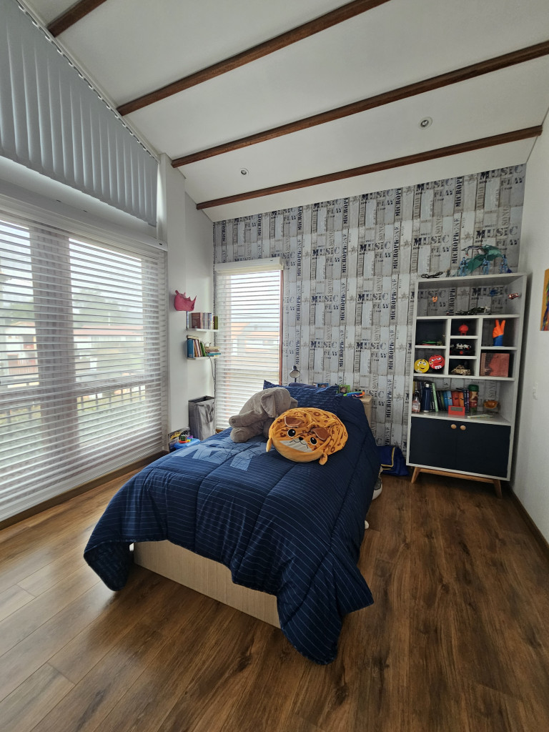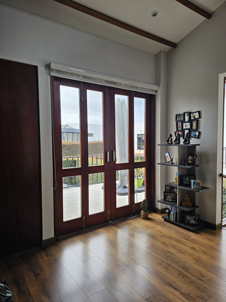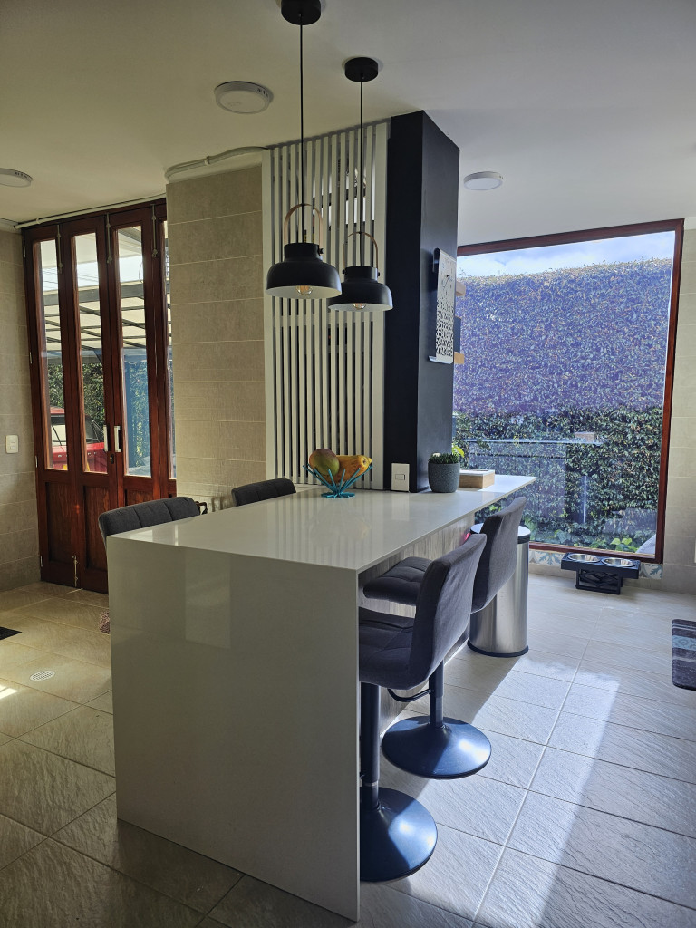 NO COMISIONISTAS - Espectacular casa de dos plantas en condominio campestre y sobre un lote independiente de 400M2. Ofrece un moderno diseño, magnifica distribución de espacios, iluminación natural y en buen estado. Cuenta con la sala con chimenea, el comedor con salida a una zona BBQ cubierta con pérgola, amplio patio trasero con zona verde, cocina semi abierta con barra, zona de ropas independiente, baño social, estudio, tres habitaciones cada una con balcón, techos altos y con su baño, la principal cuenta con chimenea, jacuzzi, deposito y salida a una terraza con agradable vista. Tiene tres parqueaderos. El sector es campestre y seguro, de fácil acceso a la variante Cajicá - Zipaquirá. El valor ya incluye la administración.