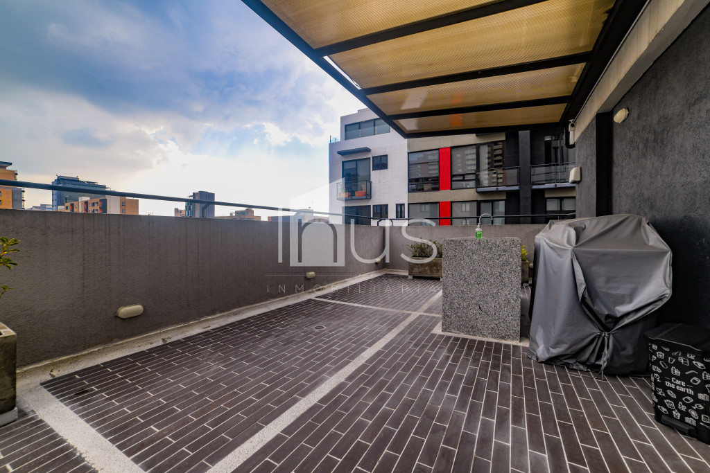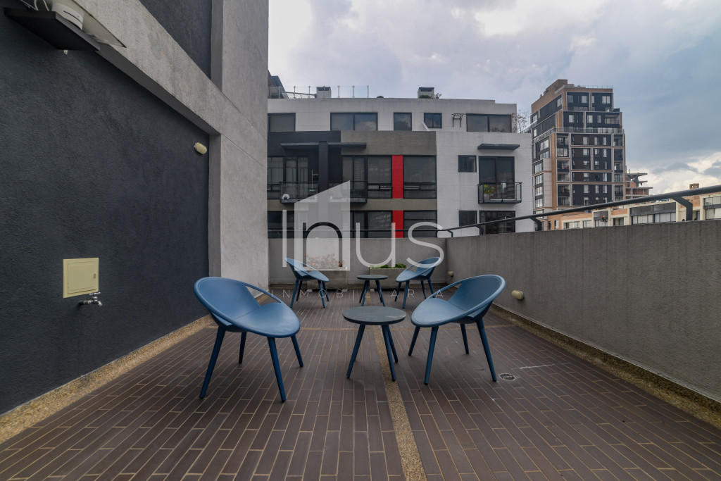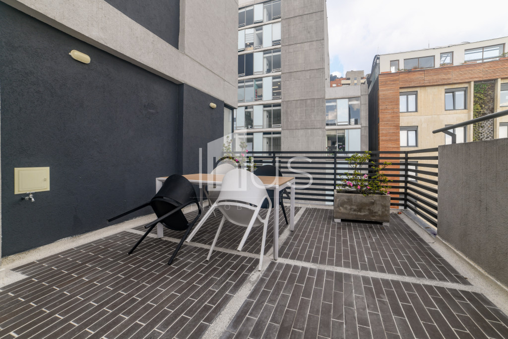 NO COMISIONISTAS - Apartaestudio loft americano, un solo ambiente muy iluminado y moderno, con buena vista, magnífica utilización del espacio y excelentes acabados. Cuenta con la alcoba, cocina abierta, closet, escritorio y un baño. Incluye una cama doble y mesa de noche. Tiene zona de lavandería con secadora en el piso de arriba. El edificio ofrece portería con vigilancia, ascensores, gimnasio, dos terrazas con zona BBQ y coworking. El sector es residencial y cercano a la carrera séptima y carrera novena y a las calles 116 y 127, al sector de restaurantes de Usaquén y al centro comercial Hacienda Santa Barbara. El valor incluye el costo de la administración, servicio de gas y de Internet. No cuenta con parqueadero.