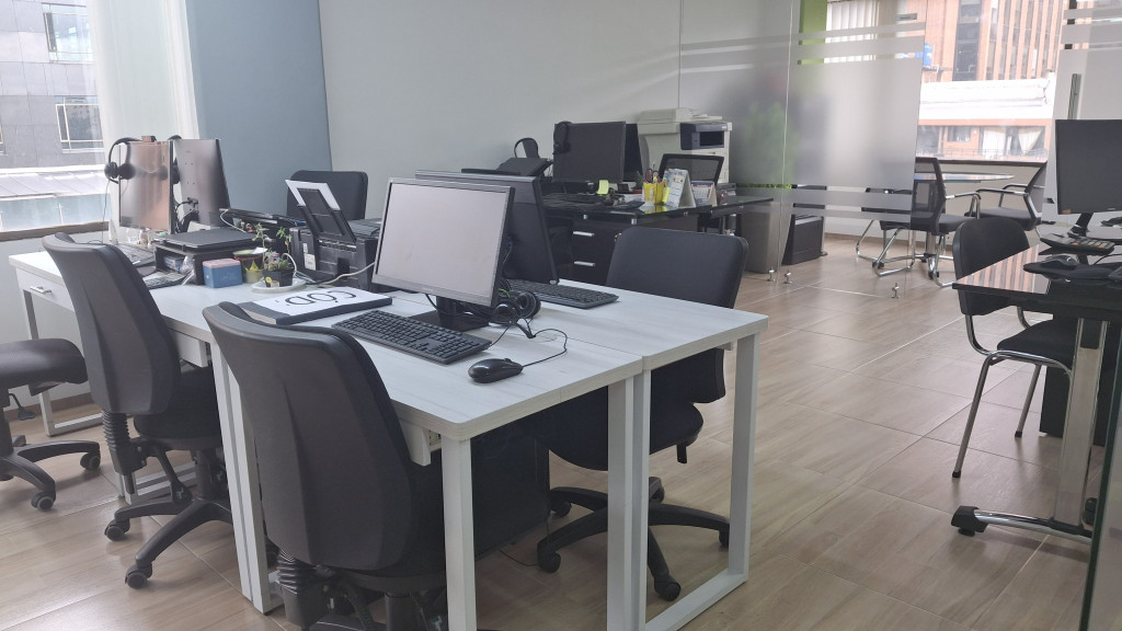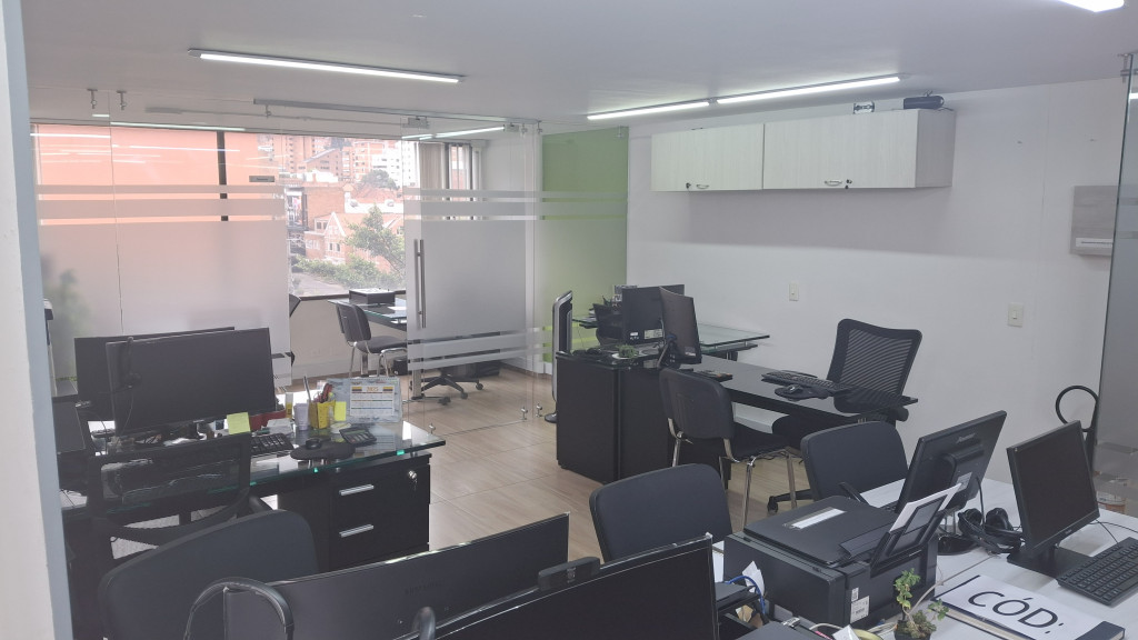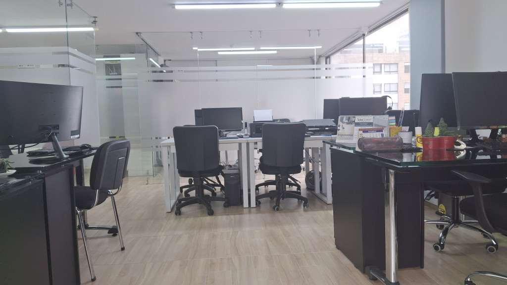 NO COMISIONISTAS - OFICINA UBICACION ESTRATEGICA en zona financiera de la CALLE 72. La oficina tiene 60 m2 y está ubicada en el sector de Quinta Camacho en una zona comercial y financiera con fácil acceso a bancos, notarias, restaurantes y transporte público. Ubicada en un sexto piso con iluminación natural excepcional, con vista hacia los cerros orientales, con amplios ventanales que garantizan muy buena luz todo el día. Cuenta con modernas divisiones en vidrio para sala de juntas y gerencia, ofreciendo un ambiente profesional y elegante. Zona de lavaplatos integrada, amplios archivadores funcionales, cuenta con un parqueadero de uso exclusivo y batería de baños en el piso. La administración está incluida.