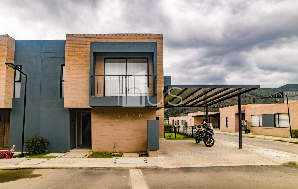 NO COMISIONISTAS - Hermosa casa ESQUINERA como nueva en conjunto campestre y sobre un lote independiente de 188M2 (el lote de mayor área en el conjunto). Tiene dos plantas y ofrece un moderno diseño, agradable vista a la montaña, iluminación natural y magnifica distribución de espacios y acabados. El primer piso cuenta con sala - comedor con chimenea a gas y con salida al patio trasero con zona verde, cocina abierta, zona de ropas independiente y baño social. El segundo piso ofrece un estudio o family room, el baño de habitaciones, tres alcobas, la principal con balcón, walking closet y baño principal con jacuzzi. Tiene un depósito y dos parqueaderos cubiertos con pérgola. El conjunto cuenta con portería y vigilancia, salón comunal y a futuro con canchas deportivas, zona infantil, parqueaderos de visitantes y gimnasio. El sector es de fácil acceso, campestre y seguro.