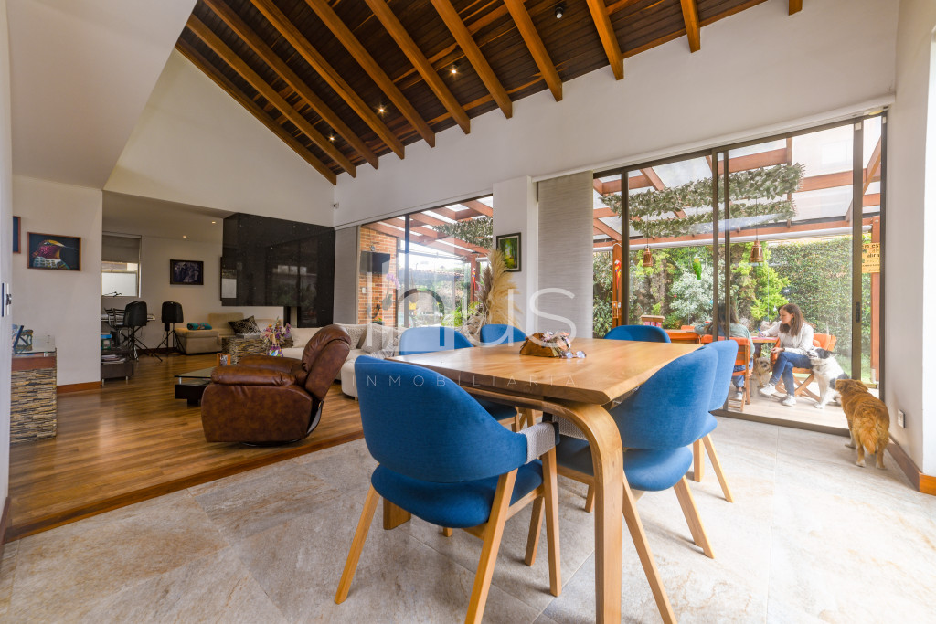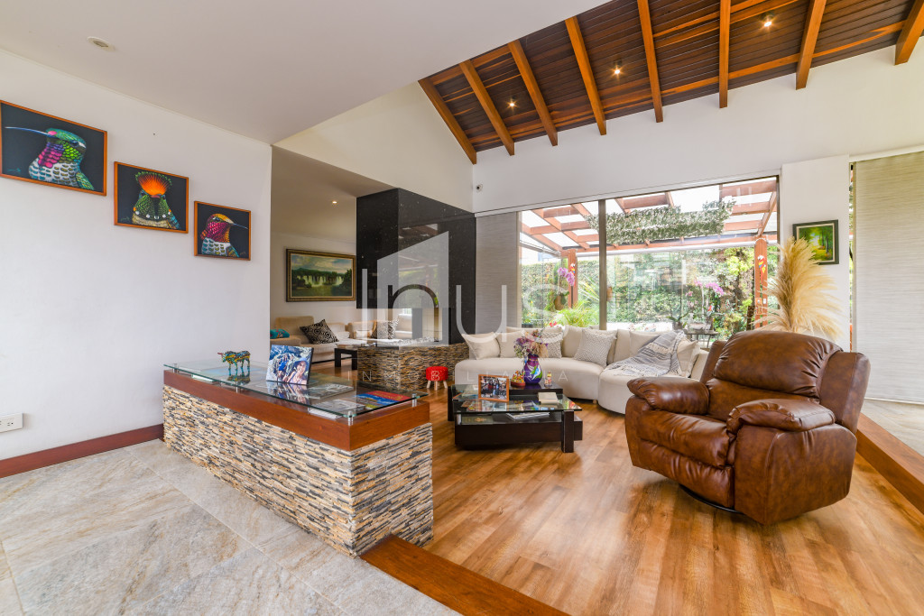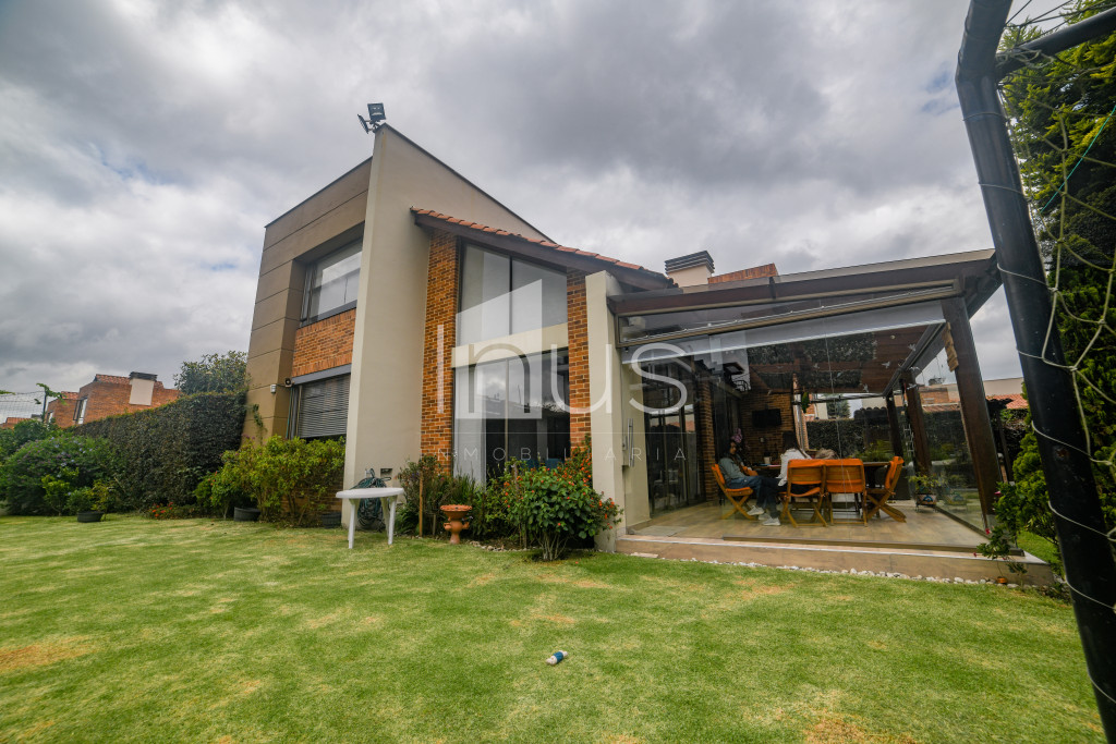 NO COMISIONISTAS - Espectacular casa ESQUINERA de dos plantas en condominio campestre y sobre un lote independiente de 890M2. Ofrece un moderno diseño, agradable vista, iluminación natural y magnifica distribución de espacios y acabados. Cuenta con techos doble altura con acabados de madera y grandes ventanales, el primer piso tiene dos salas y comedor independientes separados por la chimenea a gas, salida a una agradable terraza con piso, cortavientos y techo con pérgola, a continuación tiene una amplia zona verde con zona BBQ, jardines y un vivero, cocina abierta con isla, zona de ropas independiente, una alcoba, cuenta con el baño social y alcoba y baño del servicio. El segundo piso ofrece un estudio, family room, tres habitaciones cada una con su baño y walking closet, la principal tiene jacuzzi en el baño principal y salida a una terraza con espectacular vista. Tiene un depósito, espacio para bicicletas y parqueadero para ocho vehículos (dos son cubiertos). El condominio es club house y cuenta con vigilancia y portería, piscina, gimnasio, zonas húmedas, canchas deportivas (tenis y múltiple), salón social y zona infantil. El sector es de alta valorización en la vía chía-Cajicá (milla de oro) y a minutos del centro comercial FONTANAR.