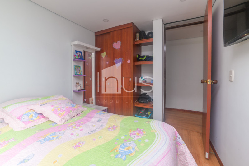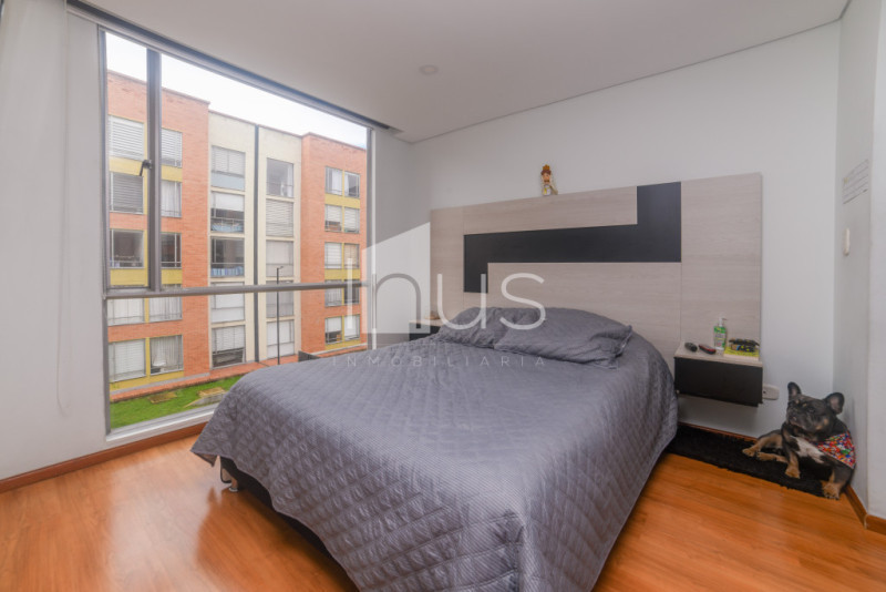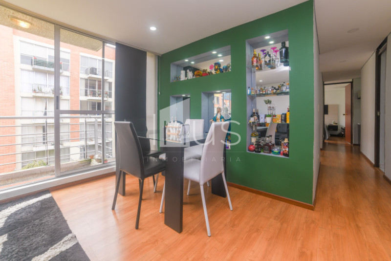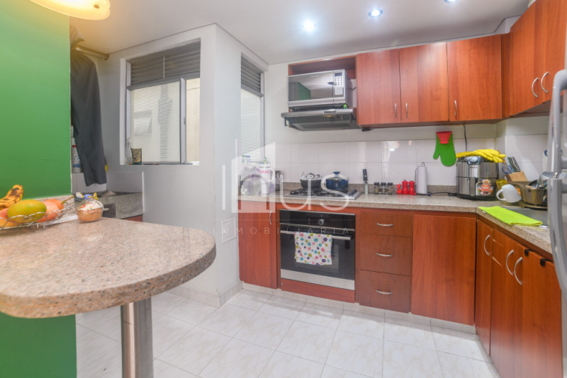 NO COMISIONISTAS - Acogedor apartamento, muy iluminado, en buen estado y con buenos acabados. Cuenta con la sala - comedor con balcón, pared con fachaleta y con un muro decorativo, cocina abierta, zona de ropas, baño social, estudio con mueble incluido, tres habitaciones la principal con vestier y baño. Tiene un parqueadero descubierto. El conjunto cuenta con portería y vigilancia, parque infantil, gimnasio, piscina, zonas húmedas, cancha deportiva, salón social y parqueaderos para visitantes. El sector es residencial, seguro y tranquilo, cercano a comercio y a transporte público. El conjunto no tiene ascensores.
