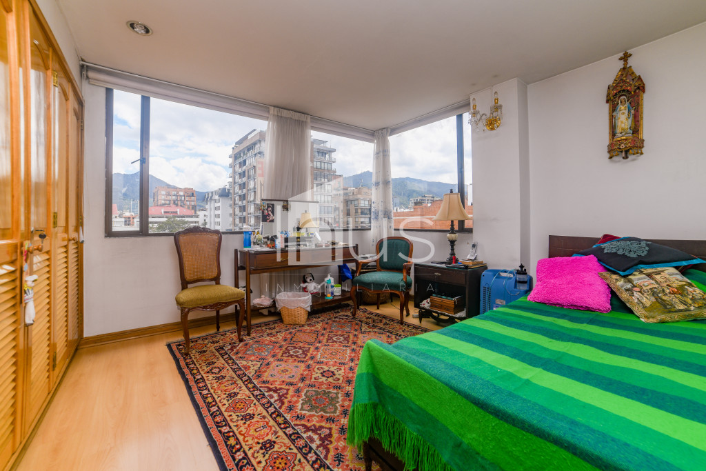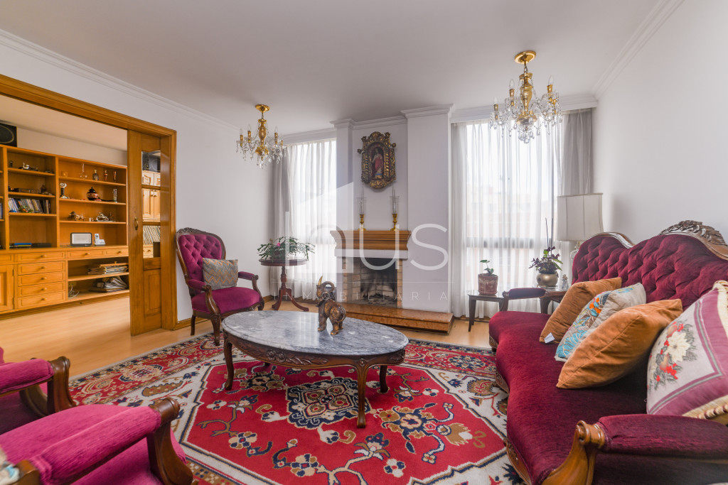 NO COMISIONISTAS - Amplio apartamento muy iluminado y con agradable vista a los cerros orientales con una magnífica distribución de espacios. Cuenta con la sala con chimenea, comedor independiente separado por una puerta francesa, una amplia cocina cerrada, cuarto de ropas, baño social, cuarto y baño del servicio, estudio con biblioteca en madera, baño de alcobas, tiene tres espaciosas habitaciones, la principal con walking closet y baño principal. Cuenta con deposito y tres parqueaderos dos en línea y uno independiente. El edificio tiene vigilancia 24 horas, ascensor, salón comunal y parqueaderos para visitantes. El sector es residencial y tranquilo, cercano a Unicentro, a restaurantes y supermercados, de fácil acceso y a solo una cuadra de la Av. 116 y de la carrera 15.