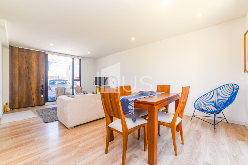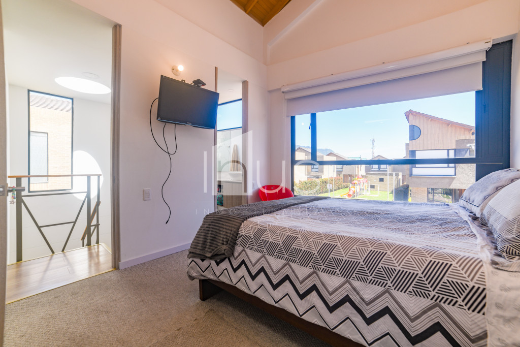 NO COMISIONISTAS - Hermosa y moderna casa de dos niveles, con magnífica distribución de espacios, iluminación y ventilación natural, agradable vista, excelentes acabados y en un ambiente tranquilo y campestre. El primer piso cuenta con la sala - comedor con puerta ventana a un amplio patio trasero con zona verde, cocina abierta, zona de ropas independiente y baño social. El segundo piso cuenta con tres habitaciones, baño de habitaciones, la alcoba principal tiene techos altos en madera, vestier y el baño principal. Cuenta con dos parqueaderos independientes. El conjunto ofrece portería con recepción y vigilancia, salón social, canchas deportivas, jardines, parque infantil y parqueaderos de visitantes. El sector es de alta valorización, de fácil acceso sobre la variante Zipaquirá - Cajicá y transporte público, a minutos del centro comercial FONTANAR y al centro de Cajicá.