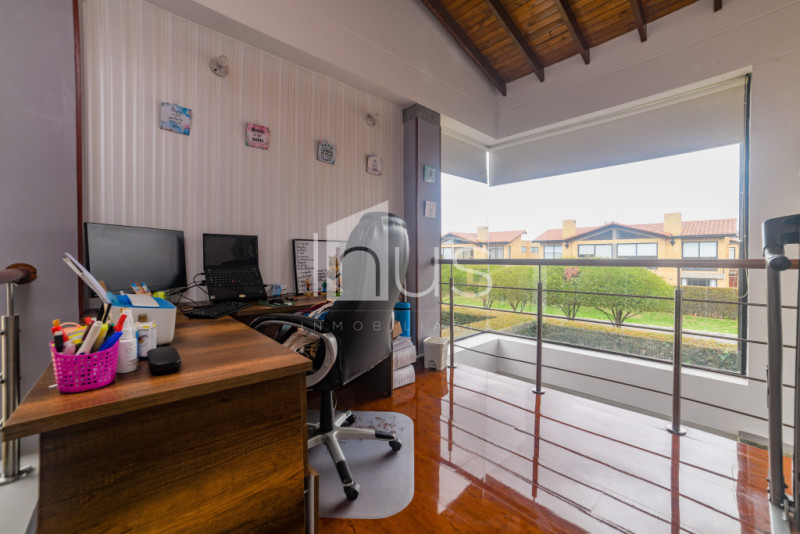 NO COMISIONISTAS - Espectacular casa de dos plantas en condominio campestre, sobre un lote independiente de 200M2 y a minutos del centro comercial Fontanar. Ofrece un moderno diseño, magnifica distribución de espacios, iluminación natural y en perfecto estado. El primer piso cuenta con la sala-comedor con doble altura, una chimenea y con salida a una zona BBQ cubierta con pérgola, amplio patio trasero con zona verde, cocina abierta, zona de ropas independiente, family room, baño social y deposito. El segundo piso cuenta con estudio, tres habitaciones con techos altos, cada una con balcón y con su baño, la alcoba principal tiene walking closet y un amplio baño con tina. Tiene dos parqueaderos. El condominio es club house ofrece piscina, gimnasio, zonas húmedas, canchas deportivas (futbol y tenis), parques infantiles, salón social y porterías. El sector es de alta valorización, es residencial, campestre y seguro, de fácil acceso a la variante chía - Cajicá. Se reciben Permutas menor valor.