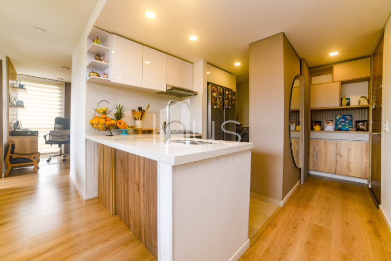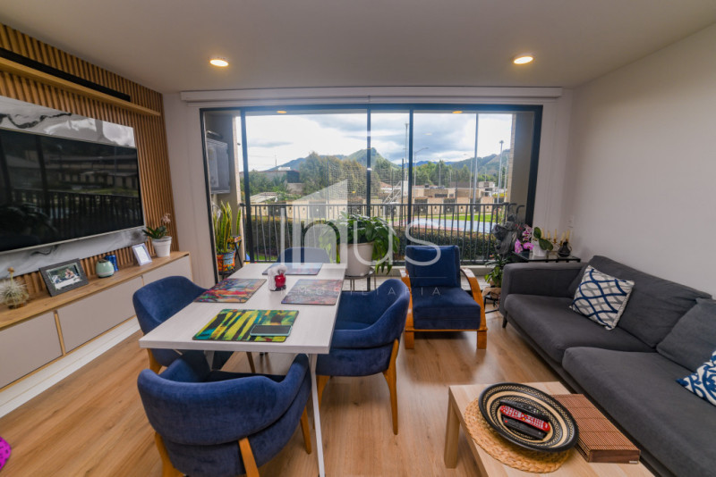NO COMISIONISTAS - Hermoso apartamento con agradable vista campestre, muy iluminado, moderno y con una magnífica distribución de espacios y acabados. Cuenta con tres alcobas, la principal con walking closet y baño, sala comedor con balcón, baño social, cocina abierta, zona de ropas, estudio y baño de habitaciones. Tiene un parqueadero cubierto. El conjunto ofrece salón social, parque infantil, zona de mascotas, ascensores y parqueaderos para visitantes (Gimnasio y zonas húmedas por entregar por parte de la constructora). El sector es residencial y campestre, cercano a la vía Cajicá - Tabio y a transporte público, próximo a sector comercial y a supermercados.
